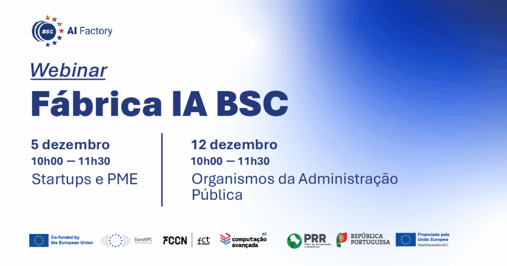The Foundation for Science and Technology (FCT) and the National Center for Advanced Computing (CNCA) promote two webinars onlineDecember 5th and 12th, 2025, for the presentation of the BSC AI Factory – services, use cases, and application process. THE Participation is free.but it requires enrollment.