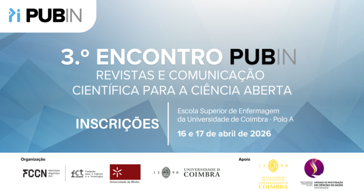 Estão agora abertas as submissões de propostas para o 3.º Encontro PUB IN, a acontecer nos dias 16 e 17 de abril de 2026, na Escola Superior de Enfermagem da Universidade de Coimbra.